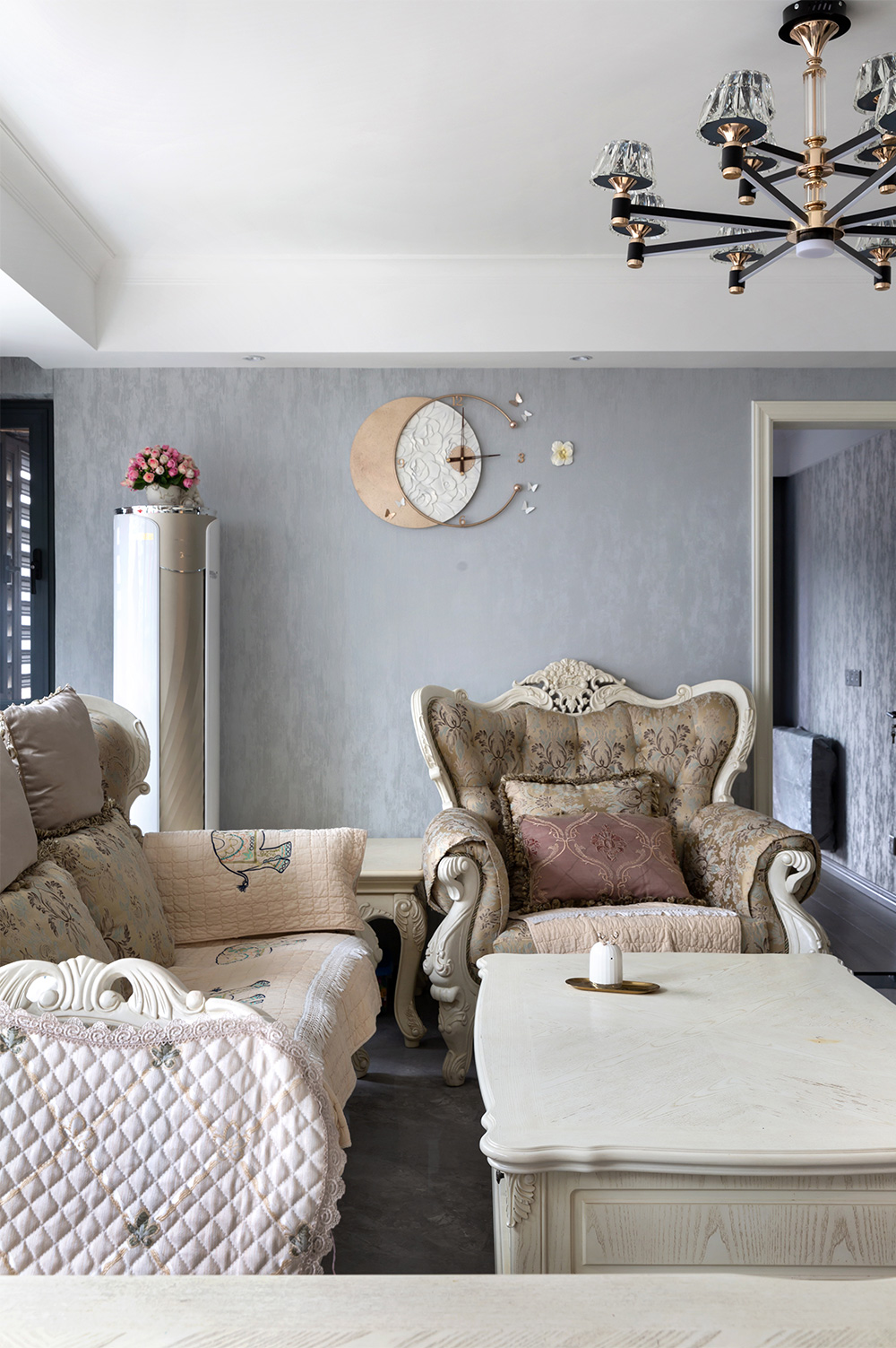 客廳的沙發(fā)套與餐桌椅的風(fēng)格一致,吃完飯之后便可以來(lái)到沙發(fā)處休息。