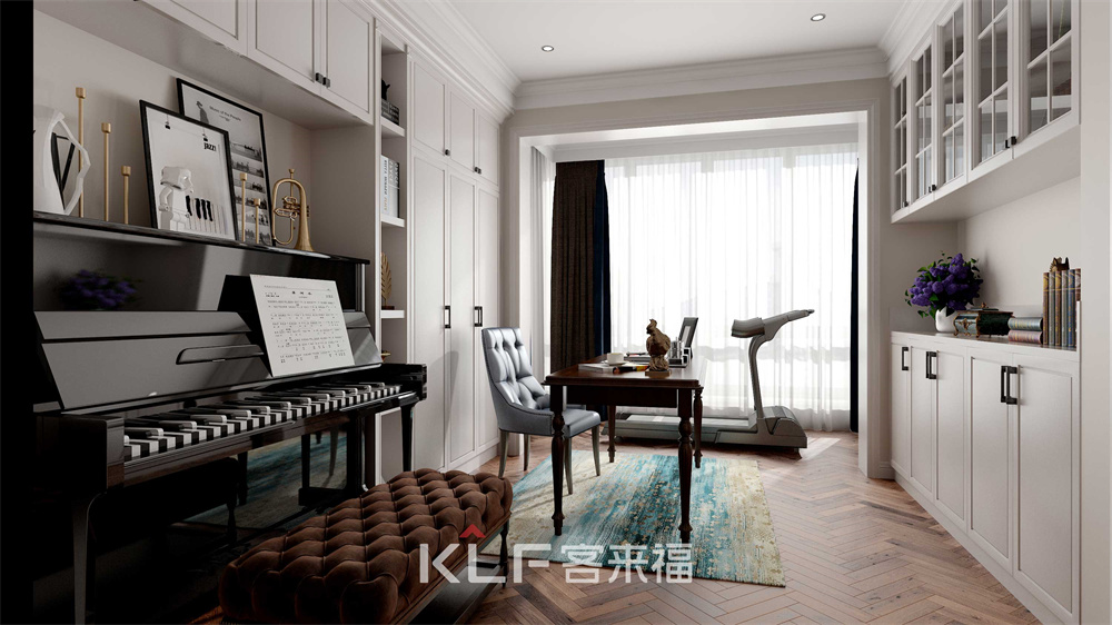 精簡(jiǎn)白色典雅空間內(nèi),優(yōu)雅的黑色鋼琴?gòu)?qiáng)勢(shì)吸睛,將高貴氣質(zhì)展現(xiàn)地淋漓盡致。合理的空間規(guī)劃,讓小小的書(shū)房幻化成凡爾賽現(xiàn)場(chǎng)。人性化多層窗簾設(shè)計(jì),合理利用陽(yáng)光。白色加深色系搭配沖擊,凸顯書(shū)房主人別樣雅致,可謂“腹有詩(shī)書(shū)氣自華”。