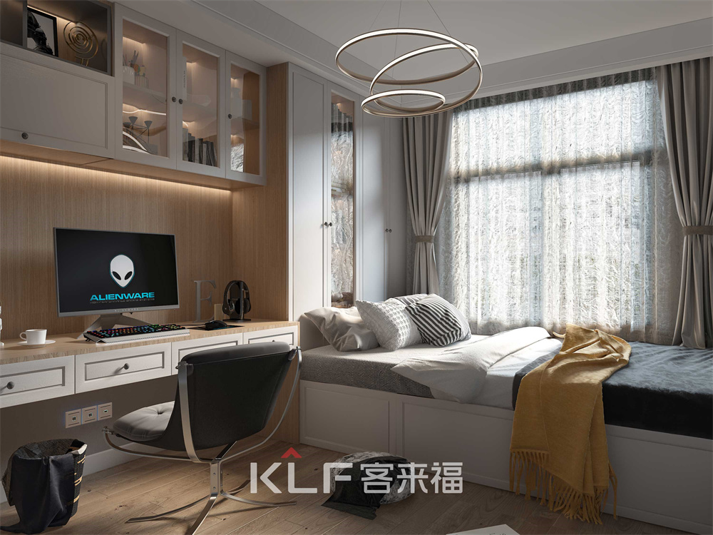 次臥采用榻榻米+定制衣柜組合,兼具睡眠、收納、休閑功能,嵌入式書(shū)桌設(shè)計(jì),讓空間規(guī)劃更合理。溫暖悠閑的木質(zhì)格調(diào),將舒適和自然融合成一股清流,輕奢慢生活從這里開(kāi)始。