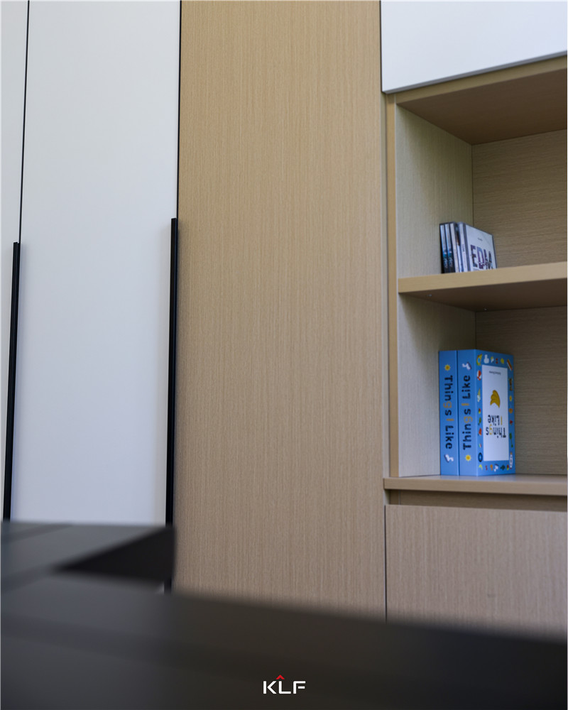 整體高柜在配色上都以簡為核心,在工藝上則精益求精,無論是封邊還是拉手,這些細(xì)節(jié)的打磨都為整體的質(zhì)感而加分。