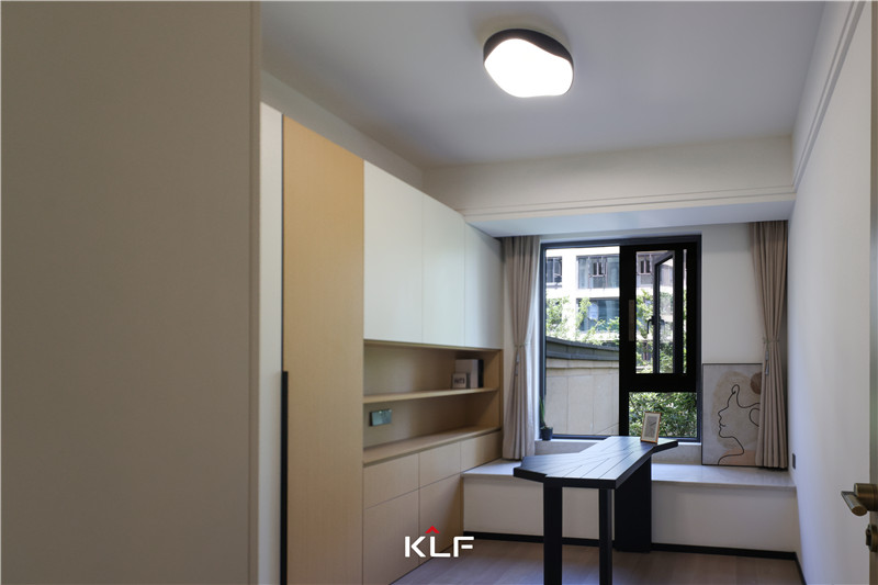 呼應(yīng)起臥室的白+原木組合,改變了結(jié)構(gòu)與比例,令人眼前一亮。無論是是屋內(nèi)的柜、桌和書,還是窗外的樹,都源自“木”,木的質(zhì)感讓家變得更為豐富,美好愜意。