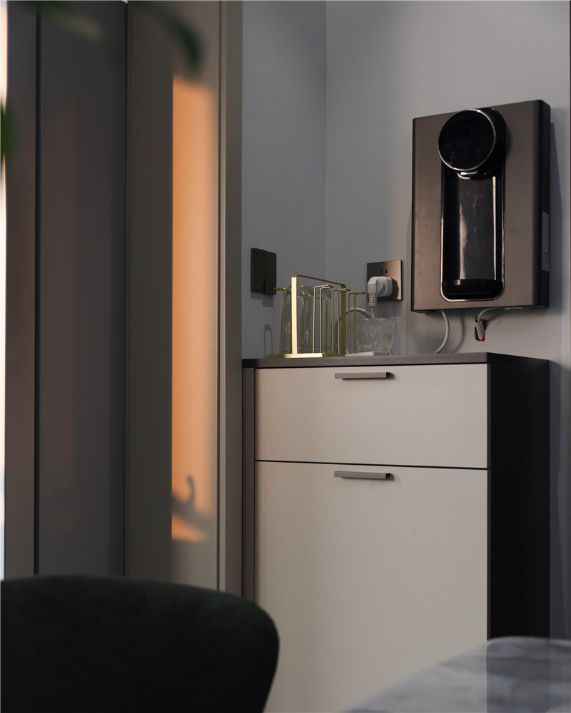 秉承現(xiàn)代簡(jiǎn)約的高定思維,以水灰及茶白為基調(diào),用圓弧線條綜合布局,輔之以燈光調(diào)和,讓整體空間自然溫柔,卻暗藏一絲恢弘之意。