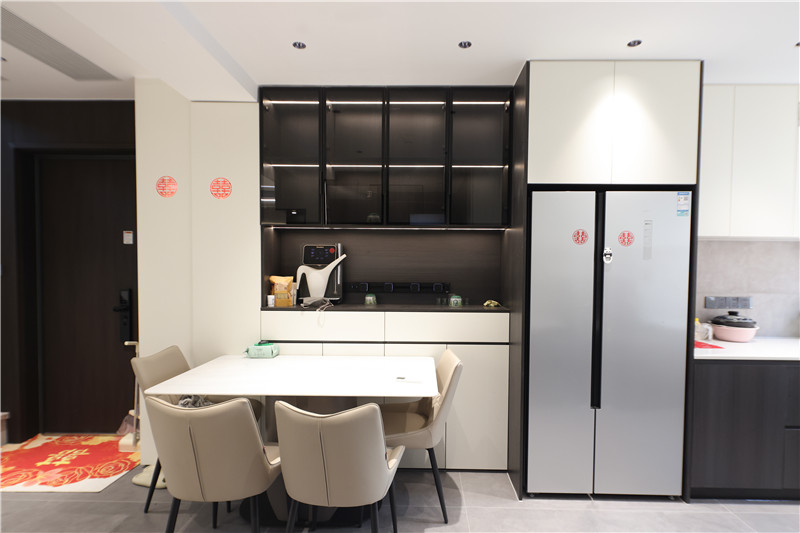 全屋色彩以芬蘭白、黑木紋為主調(diào),簡(jiǎn)約雅致,其整體到細(xì)節(jié)的考究,展現(xiàn)出人們對(duì)生活品質(zhì)的追求。