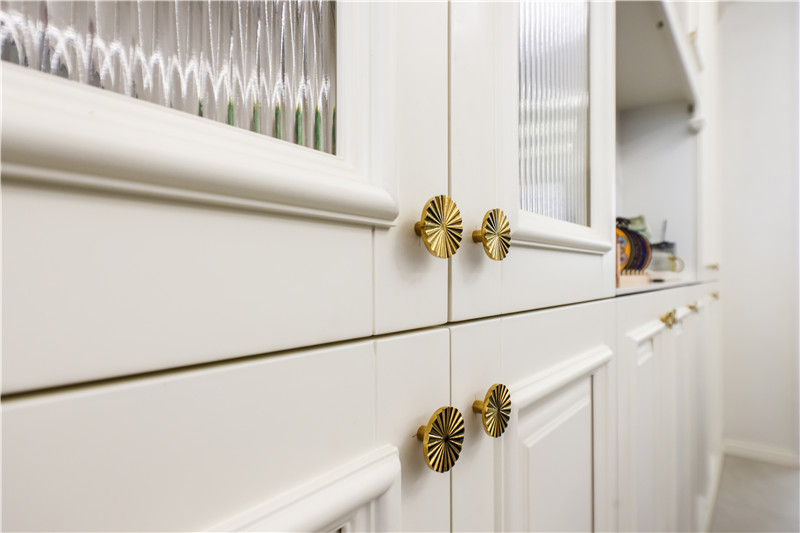 本案例中,柜類采用水漆工藝,0醛添加 0苯添加的環(huán)保屬性下,呈現(xiàn)出產(chǎn)品的高級(jí)質(zhì)感;柜體為芬蘭白色調(diào)、柜門為極光色,給人以溫暖治愈之感;造型板設(shè)計(jì)+太陽(yáng)花拉手,古典高貴。