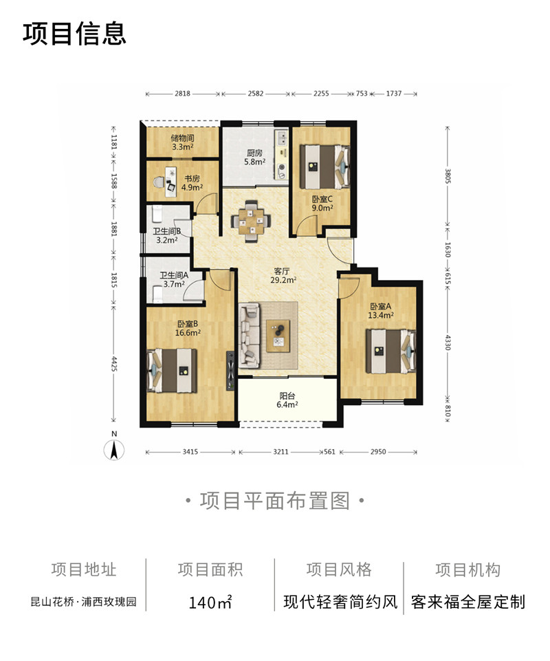 本案是來自昆山花橋的浦西玫瑰園,整體為140㎡現(xiàn)代輕奢簡約風(fēng),屋主致力于追求生活品質(zhì)與現(xiàn)代審美的平衡,客來福家居創(chuàng)意定制,打造出奢而不華的品質(zhì)空間。