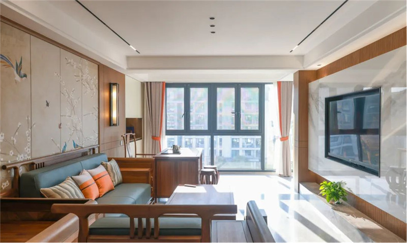 本案新中式風(fēng)更貼近年輕人審美,使用簡約的設(shè)計(jì)手法滿足日常功能需求,儒雅的配色與裝飾構(gòu)建濃厚中式風(fēng)韻味,整體落地效果擺脫對(duì)新中式固有思維的“偏老氣”“偏俗氣”,空間氛圍集高級(jí)、大氣與雅致于一體。