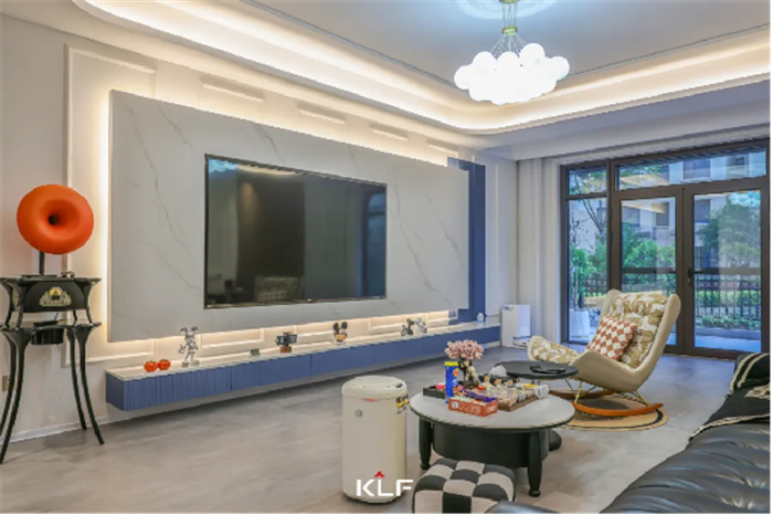 客廳法式雕線設(shè)計(jì)背景墻搭配巖板優(yōu)雅元素,精細(xì)考究的制作工藝突出了法式的標(biāo)志,更增添幾分浪漫情懷。