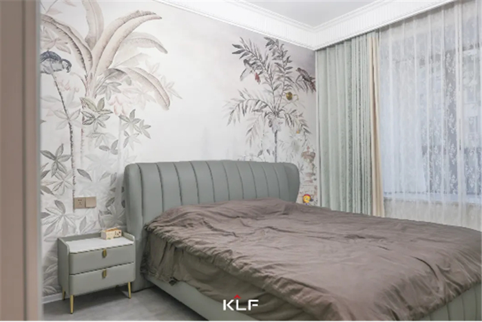 主臥在床頭背景墻的設(shè)計(jì)上,選用了圖案的壁紙,這種壁紙不僅與輕法式風(fēng)格相得益彰,還為空間增添了一份浪漫與溫馨。