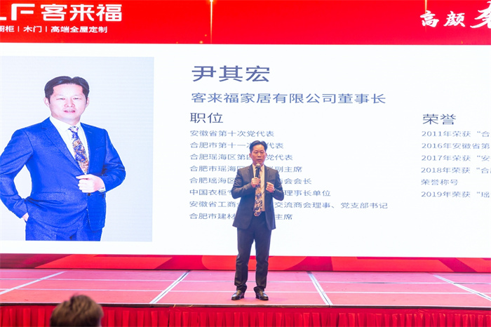 客來福家居股份有限公司董事長尹其宏先生上臺致詞,飽含對每一位家人的真摯情感,在新的一年里,尹董更希望與每一位家人并肩同行,為實現(xiàn)共同的夢想一起奮斗。