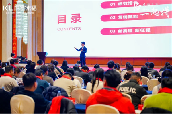 晚場會議伊始,客來福零售事業(yè)部副總尹邵杰上臺做2025年營銷戰(zhàn)略規(guī)劃分享。他指出,隨著新房紅利減退、大宗渠道弱化,家居行業(yè)正進入加速洗牌的新時代?!盁o整裝不增長”成為共識,迫使定制企業(yè)全面升級精細化服務(wù)思維,從單純的產(chǎn)品銷售轉(zhuǎn)向提供“空間解決方案”。未來,客來福要堅守以定制產(chǎn)品為核心的整裝服務(wù)模式,與上下游行業(yè)深度合作、雙向賦能,共同打造全品類交付組合拳,全力推進大家居戰(zhàn)略落地,實現(xiàn)大家居強流量、促轉(zhuǎn)化、擴單值、優(yōu)交付的絕對生態(tài)體系實力。