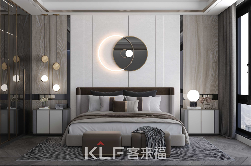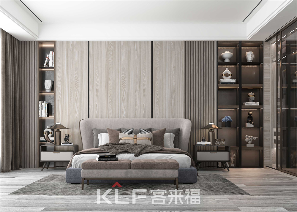 以原木色為基調(diào),讓空間木質(zhì)感更強烈,木材自然形成的紋理在經(jīng)歷精工匠造后,讓自然和時光的沉淀變得越發(fā)清晰可見,塑造出的厚重感和不經(jīng)意間流露出的華貴感,讓木飾面色溫和舒適,給人一種自然而沉靜的感覺。