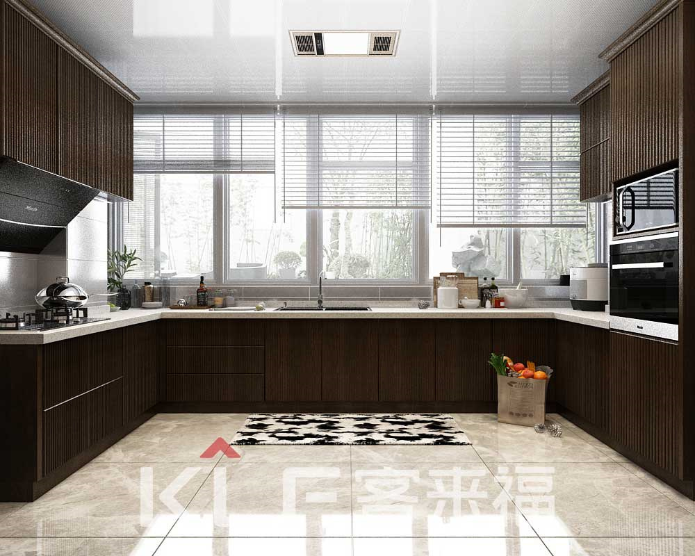 寬敞的中式廚房,采用U型櫥柜設(shè)計,柜體隨墻線而走,節(jié)省了有限的烹飪空間。臺面采用大理石材質(zhì),難留污、易打理;主體柜體采用了封閉式設(shè)計,極大的增強了存儲功能;墻體整面打窗,給廚房優(yōu)質(zhì)采光。
