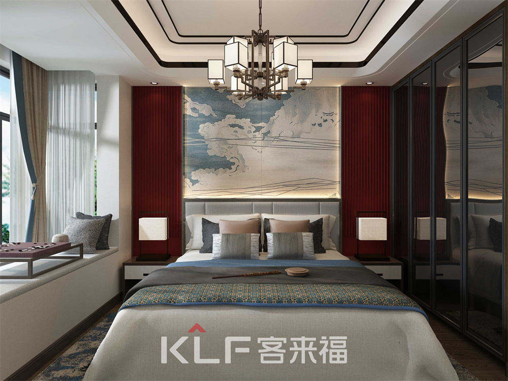 中式雅韻的背景墻,搭配古風(fēng)吊燈,展示睡眠的神圣感。側(cè)邊衣柜采用透明推拉門,既節(jié)省臥室空間,也讓衣物的挑選更容易。幾平米的飄窗,成為臥室的主要采光源,放上抱枕,擺上棋盤,這里就能成為消磨時光的寶地。